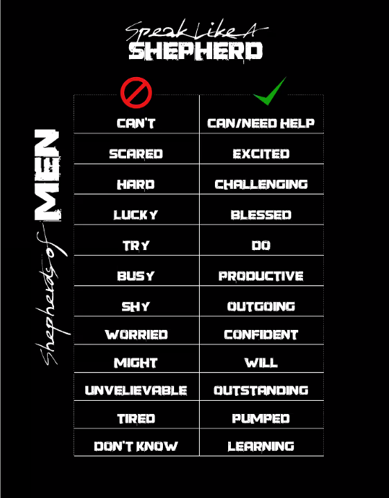 Top Tips from the Shepherds of Men: Read - Read 5 pages everyday Associate – Surround yourself with positive people. Those you surround yourself with are the sum of who you will become Stay Active – Find an active hobby or interest like hiking, sports, running etc Input –Put good in (uplifting podcasts, good music, webinars etc) Focus on the Positive – Grow your positive attitude! Always stay true to your morals and values. Etiquette – When you look good and act good – you FEEL good!